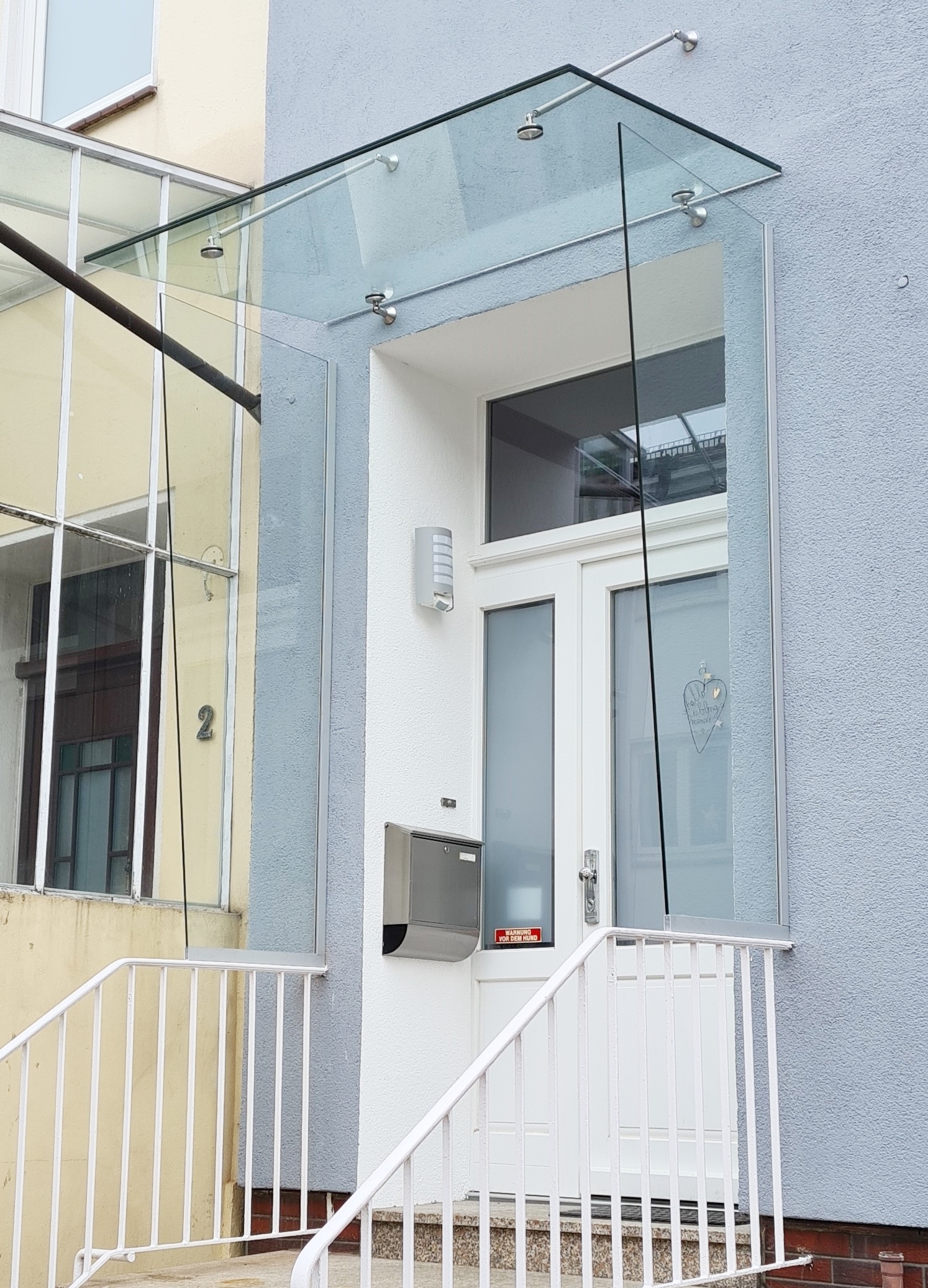 Haben Sie genug davon, vor Ihrer Haustür zu stehen und nass vom Regen zu werden, weil Sie Ihre Haustür noch aufschließen müssen? Oder ständig den Eingangsbereich putzen zu müssen, weil dieser der Witterung schutzlos ausgesetzt ist? Dann haben wir die perfekte Lösung für Sie: ein Glasvordach von Glaserei Richter. Wir bieten Ihnen: